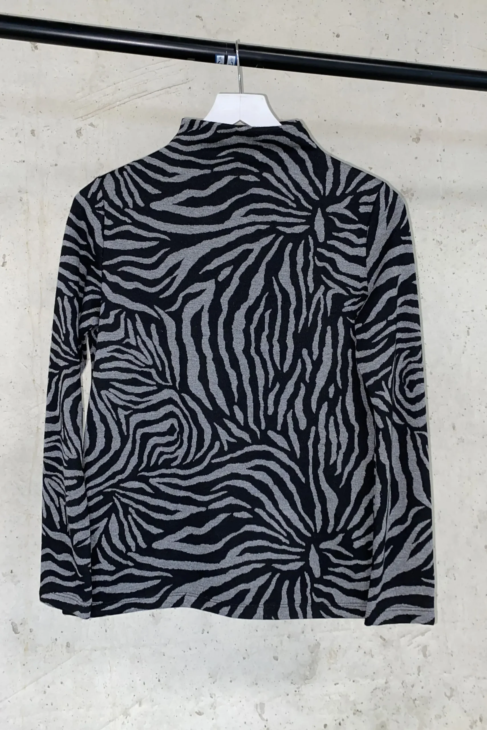 - Der Zebramuster-Print erstreckt sich über das gesamte Oberteil