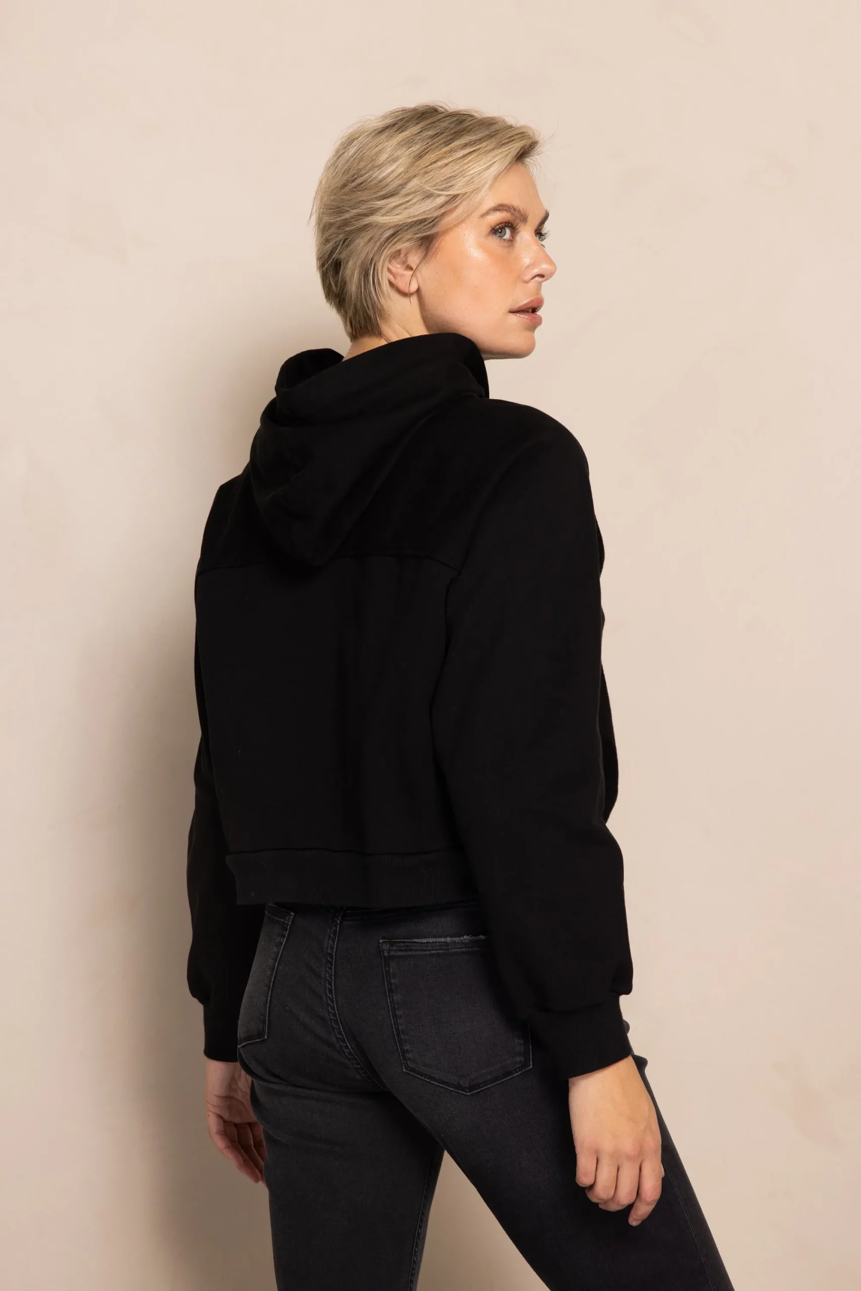 - Passform: Lockerer, cropped Fit