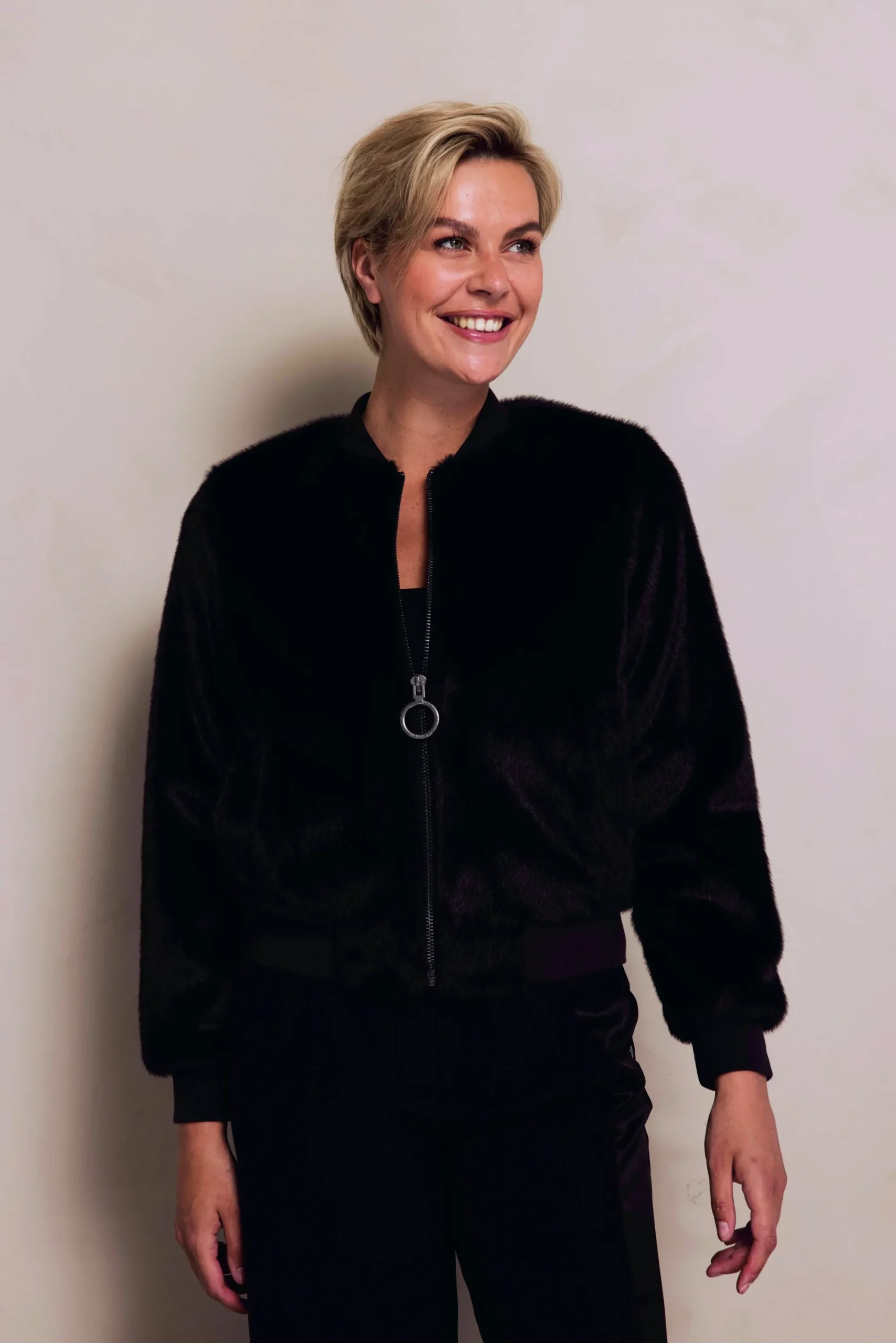 - Bomberjacken-Stil mit klassischem Rundhalsausschnitt