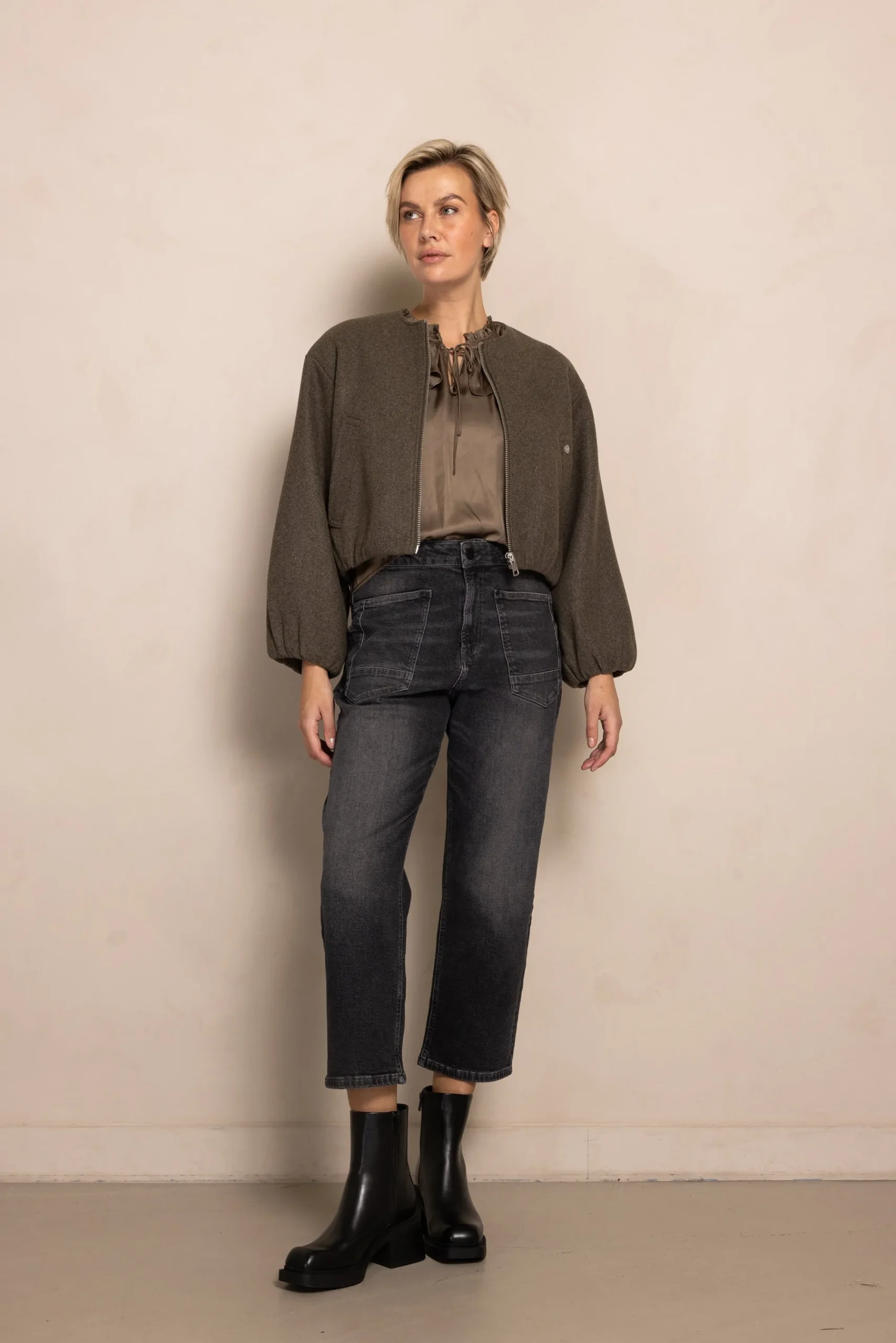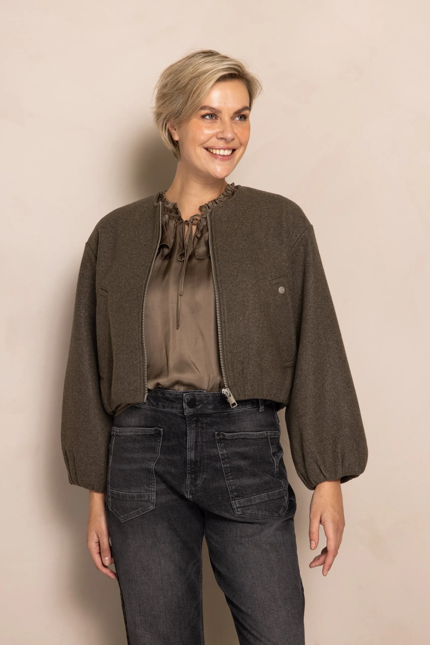 Passform: Locker geschnitten mit leicht verkürzter Länge – Blouson-Stil