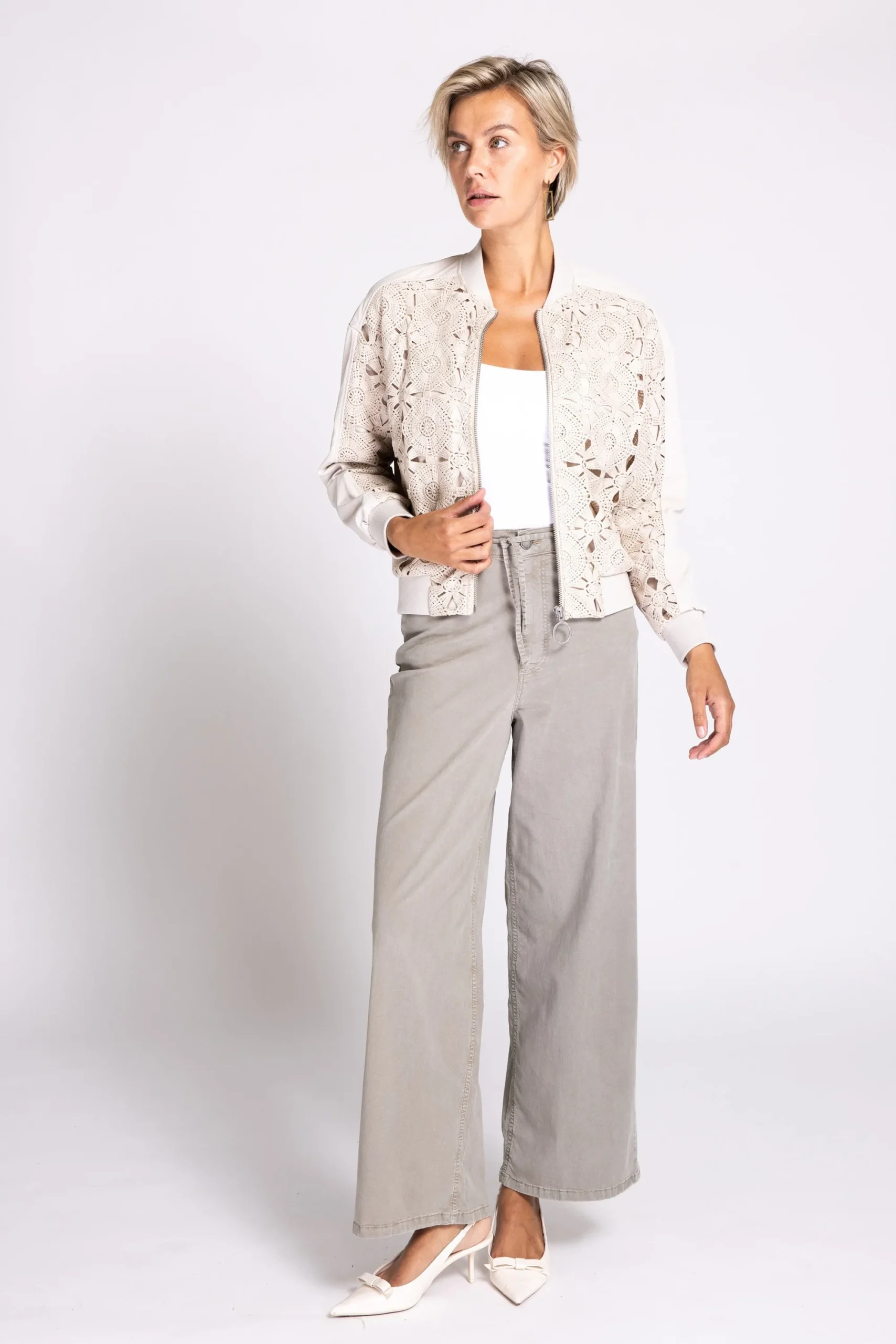 - Knopf mit Reißverschluss + Gürtelschlaufe
