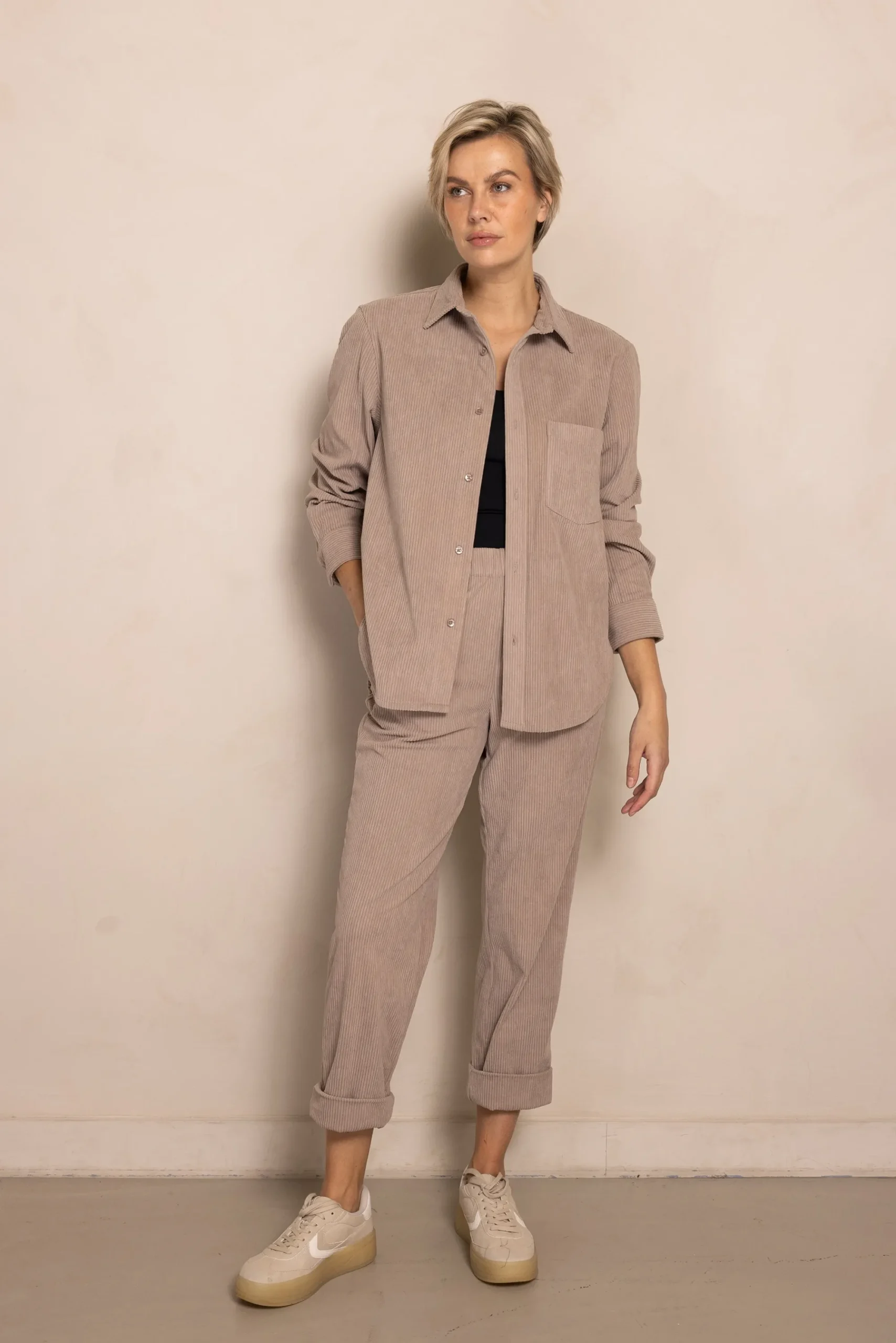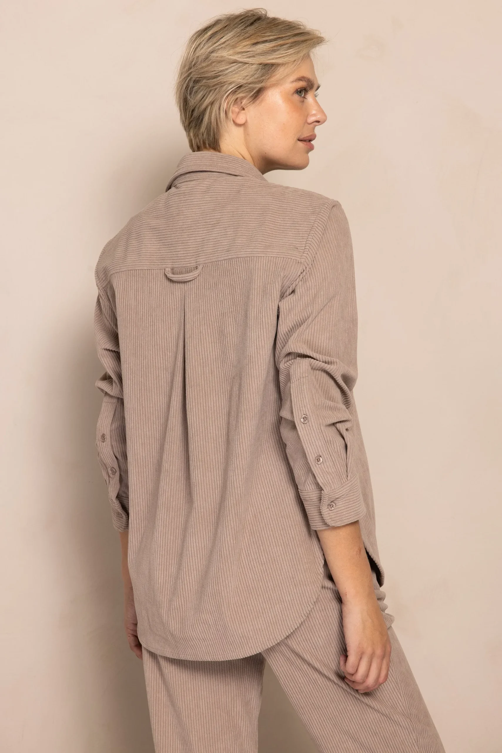- Muster: Unifarben mit feiner Cordstruktur