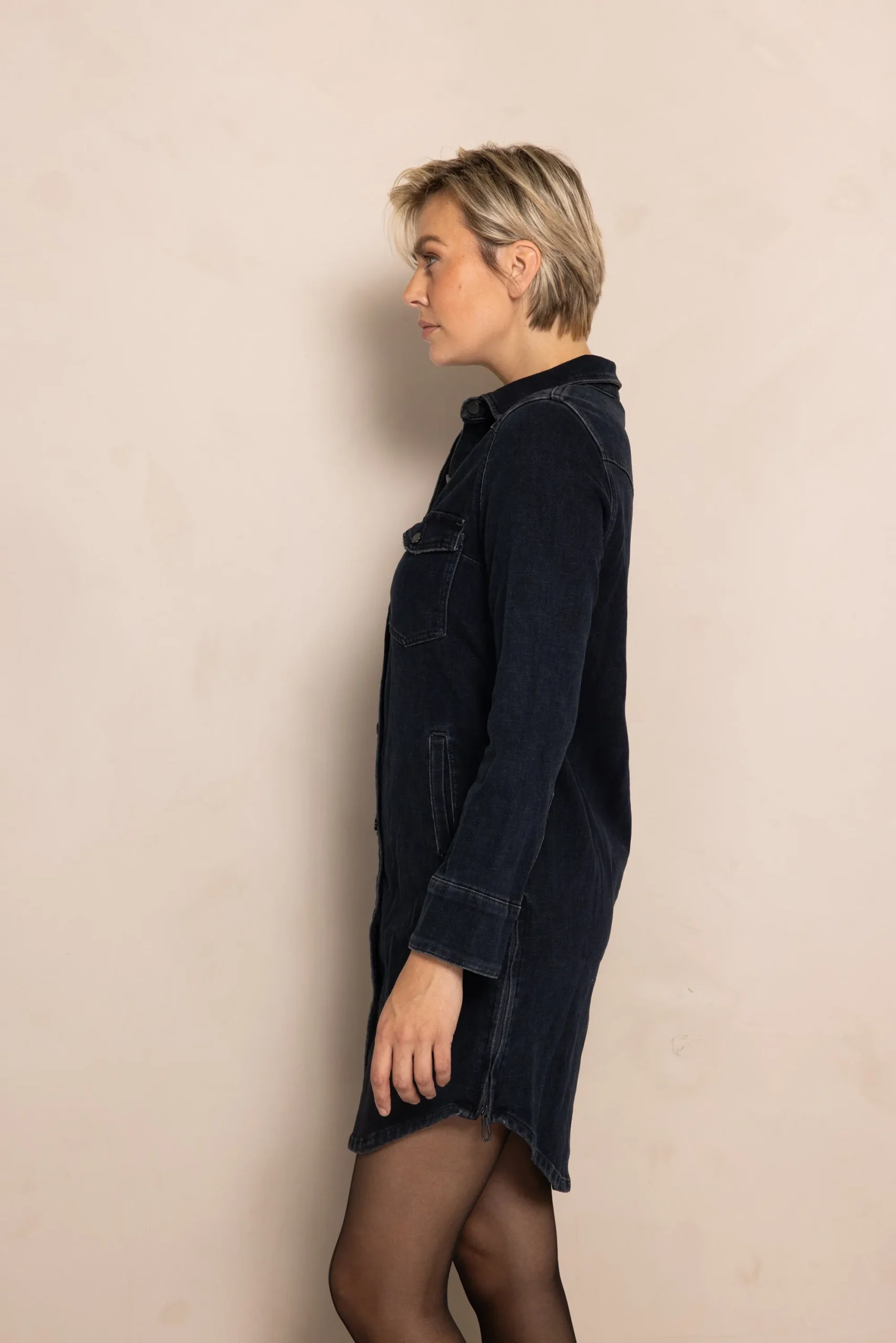 - Abgerundeter Saum mit kleinen Seitenschlitzen