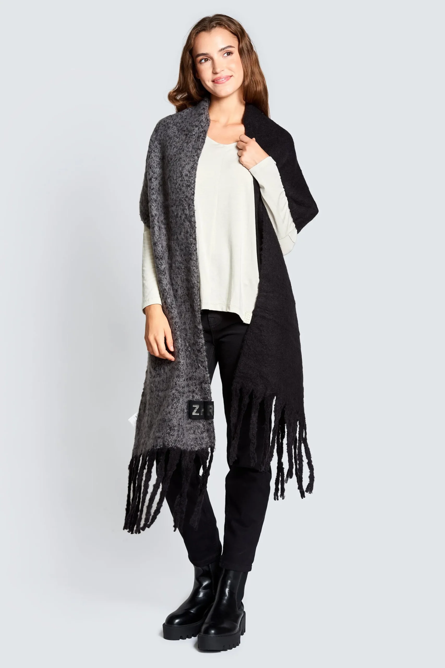 - Fransen: Lange Fransen an beiden Enden für einen lässigen Look