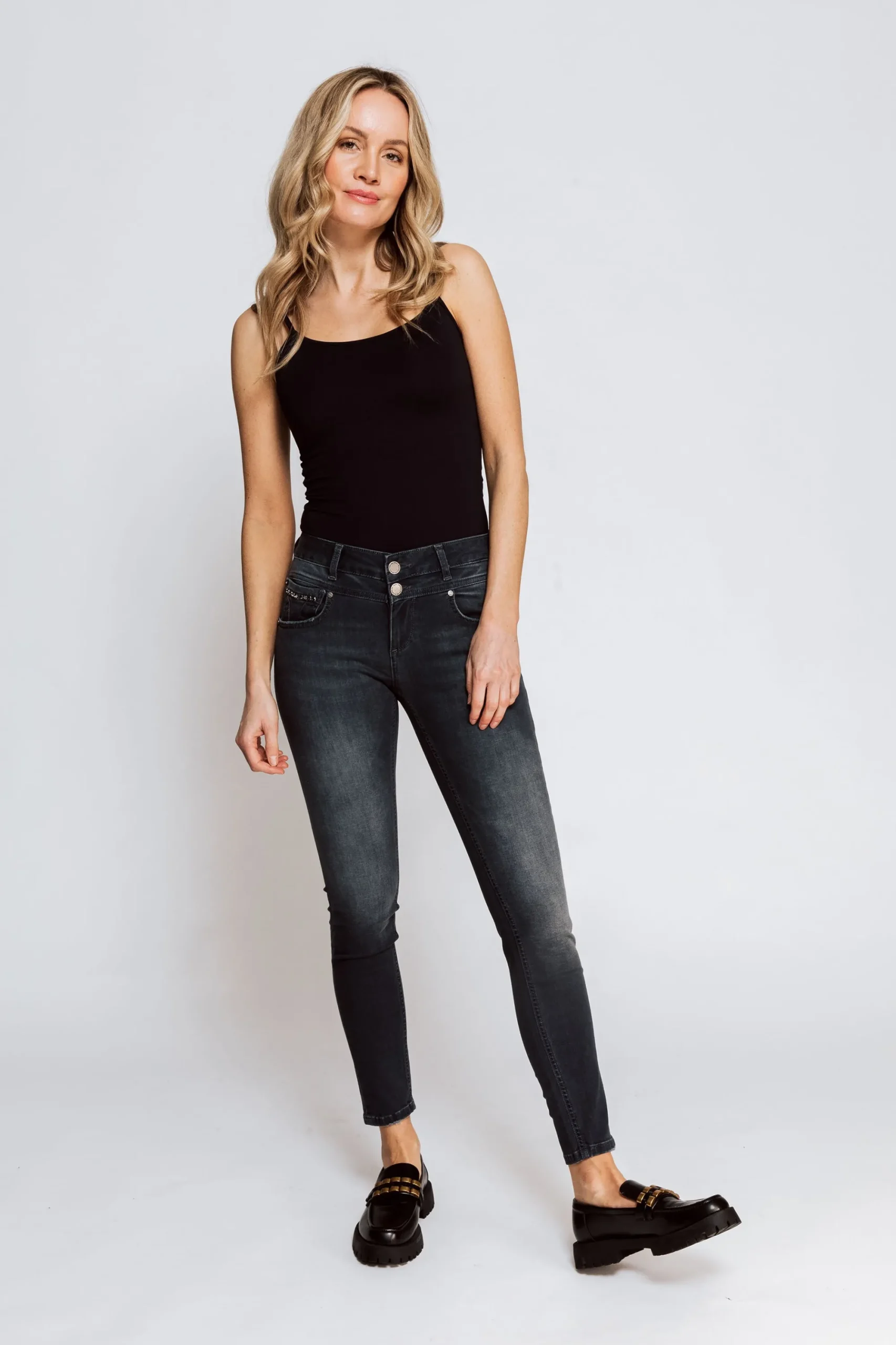 Das Model ist 179cm groß und trägt Größe 27