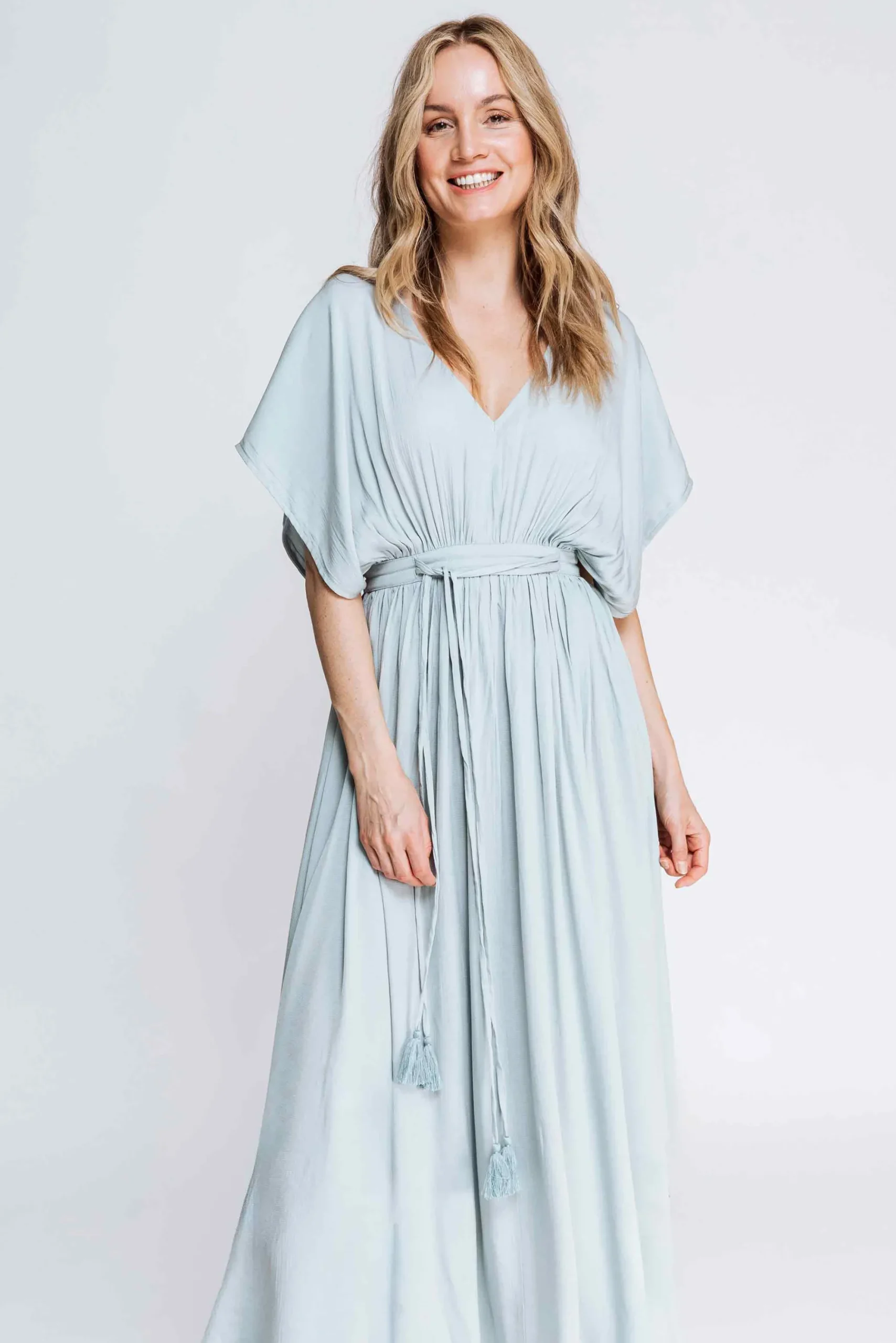 - Details: Kordelzug am Bund – V-Ausschnitt – oversized Ärmel