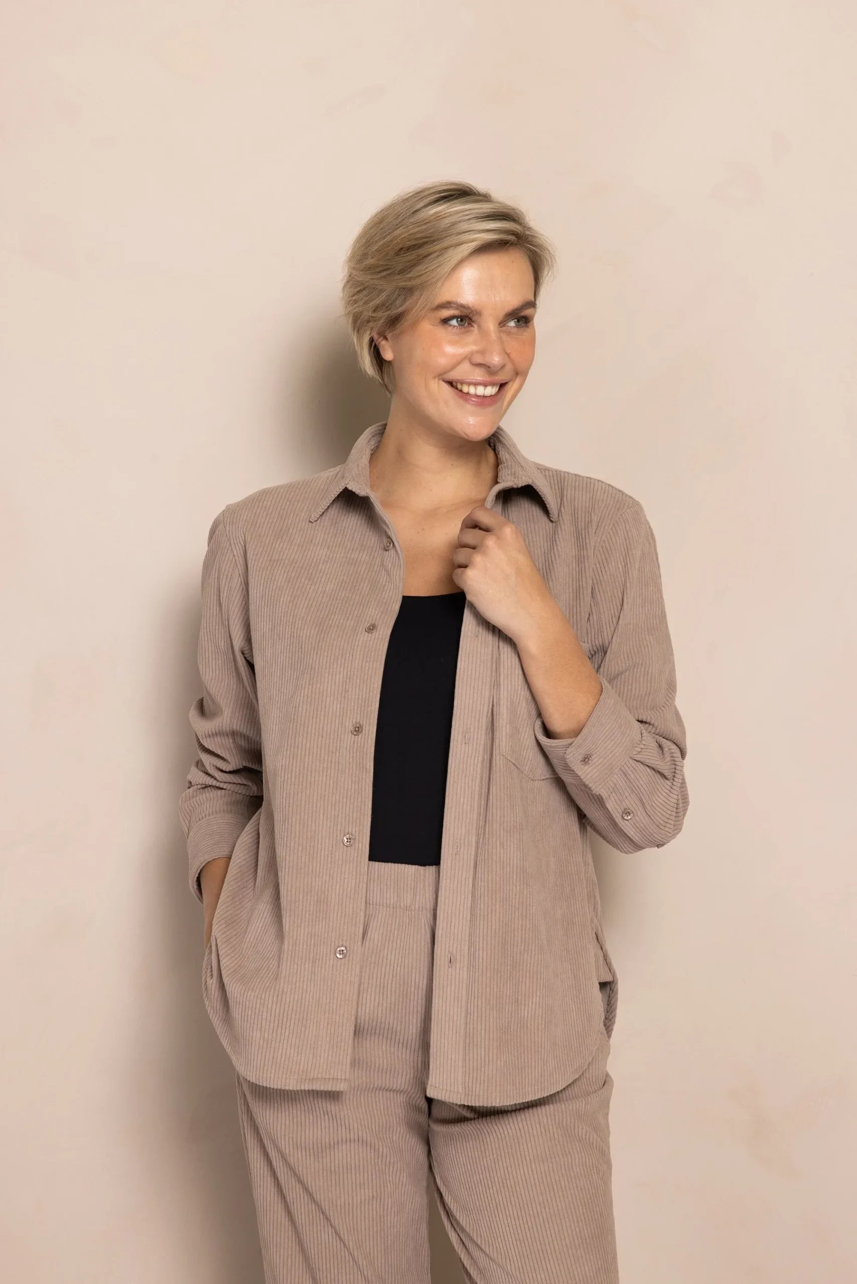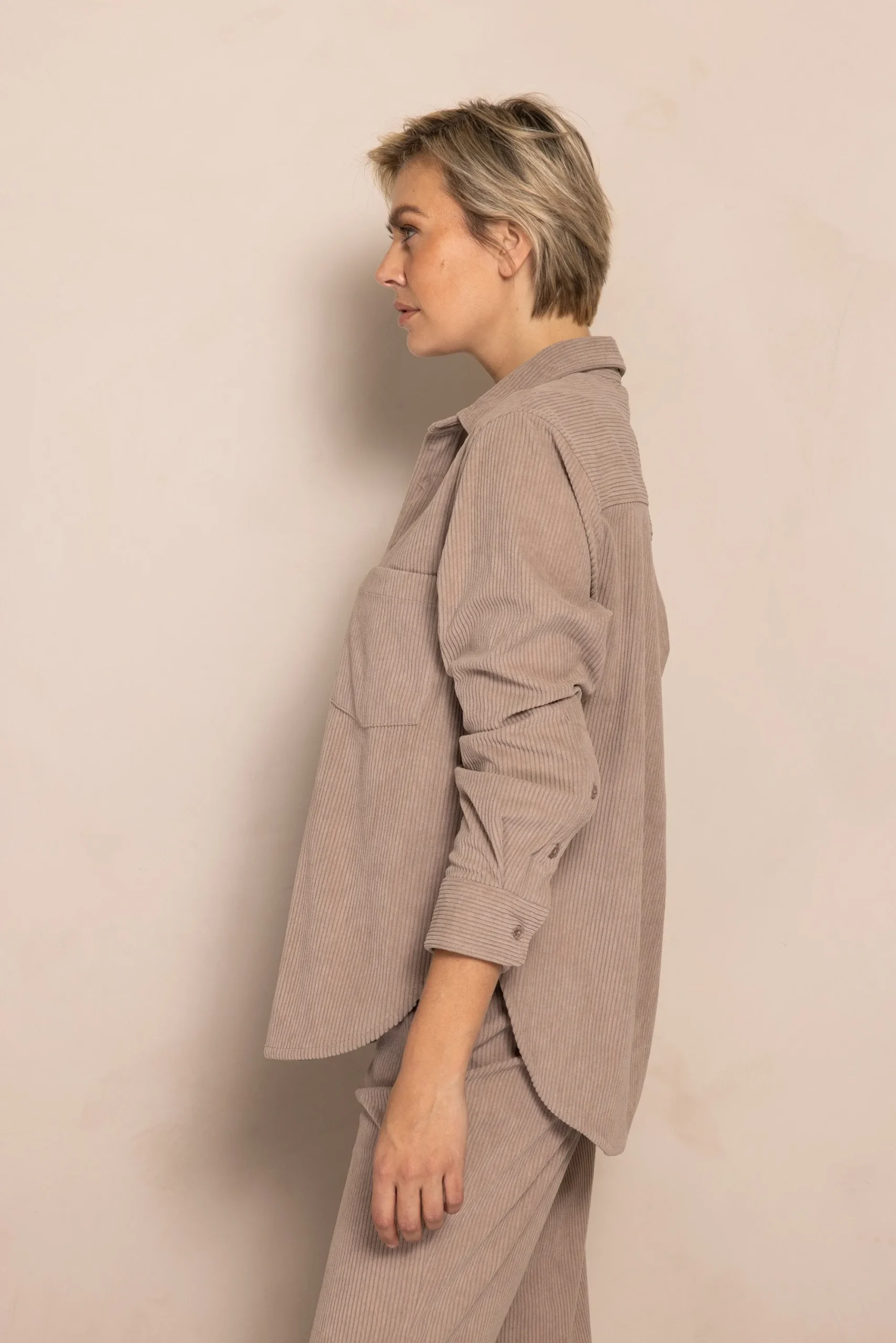 - Muster: Unifarben mit feiner Cordstruktur