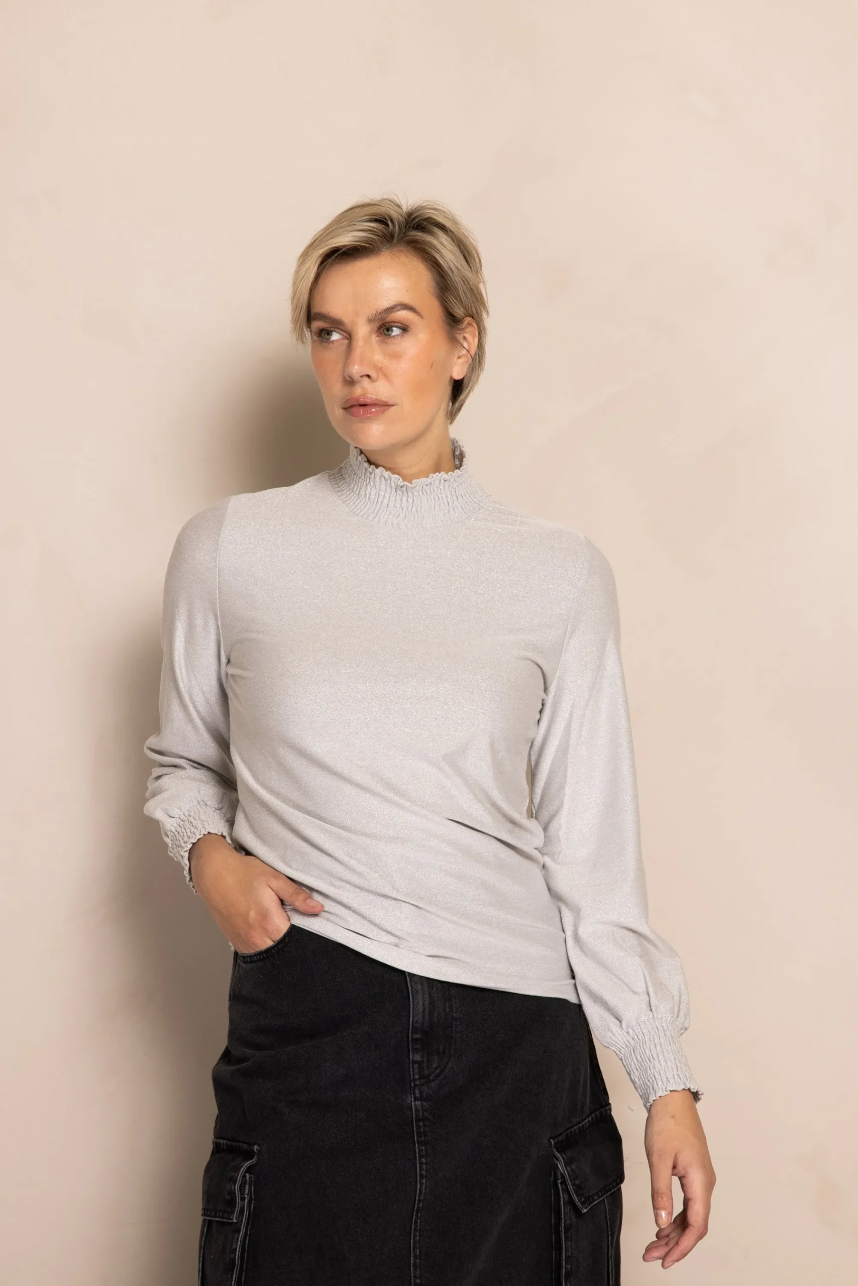 Geraffte Ärmelabschlüsse mit Smokbündchen